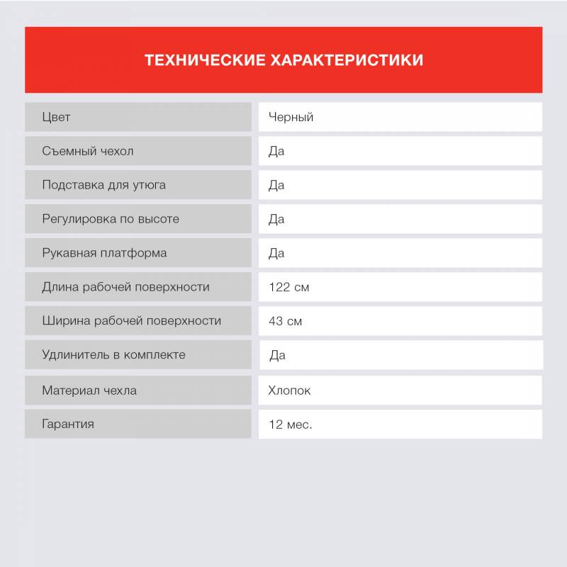 Гладильная доска Starwind SW-IB1748 122x43см рег.высот. рукав.платф. черный