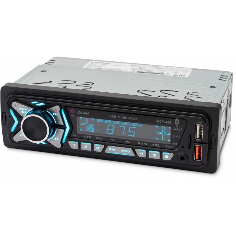 Автомагнитола Digma MCP-455 1DIN 4x50Вт v5.0 USB 2.0 AUX 4 ПДУ