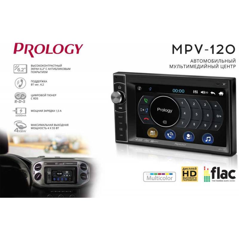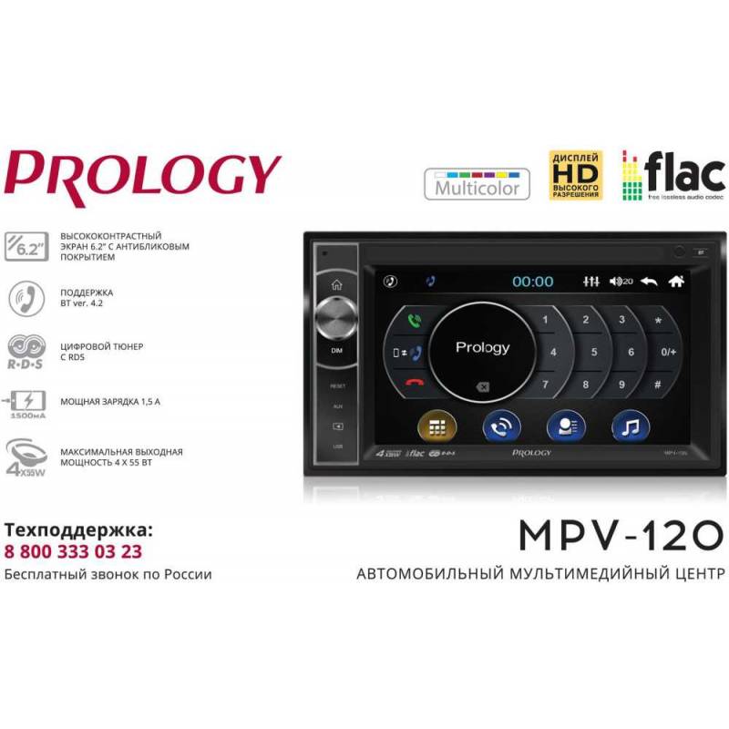 Автомагнитола Prology MPV-120 2DIN 4x55Вт v4.2 6.2" ПДУ RDS (PRMPV120)