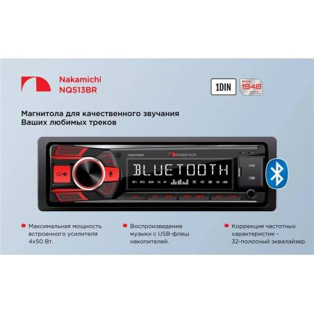 Автомагнитола Nakamichi NQ513BR 1DIN 4x50Вт v5.1 ПДУ RDS (NAK-NQ513BR)