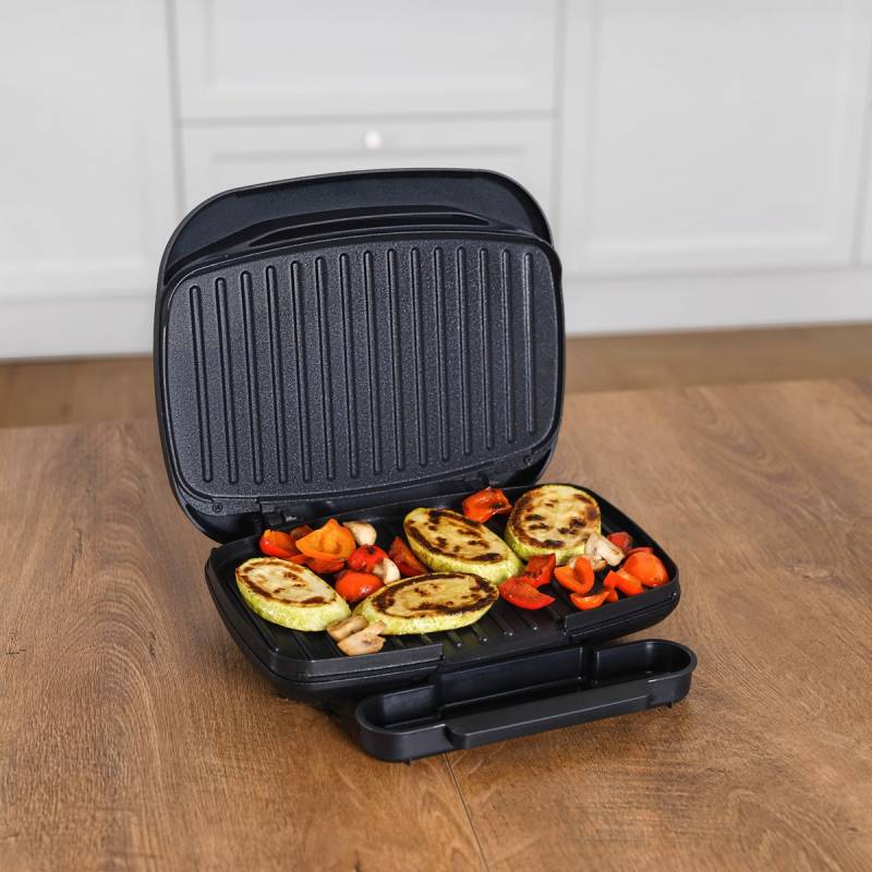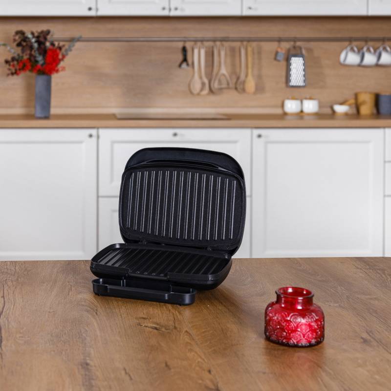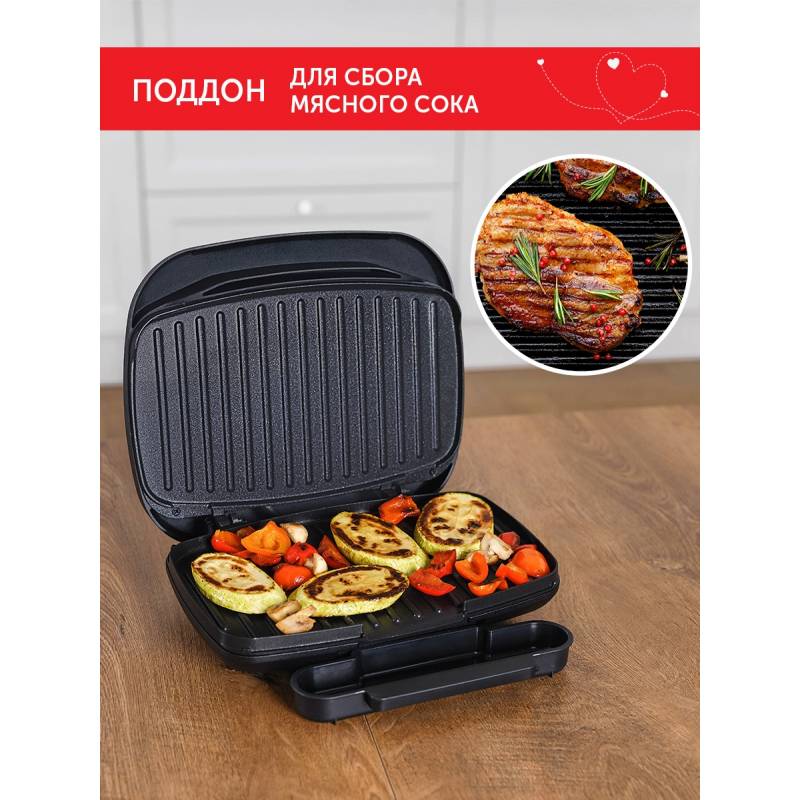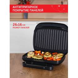- "Завтрак, обед и ужин с одним прибором Размер рабочих поверхностей – 26х16 см Антипригарное покрытие панелей – готовьте без масла"