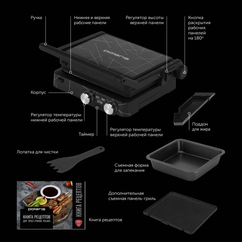 Электрогриль Polaris PGP 2502 2000Вт черный
