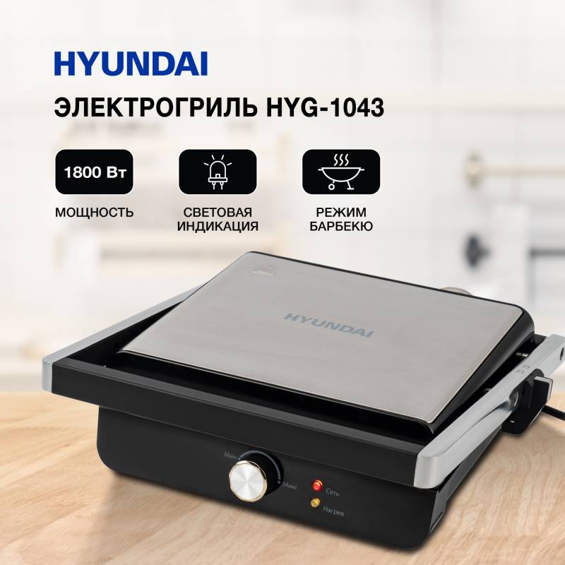 Электрогриль Hyundai HYG-1043 1800Вт черный/черный