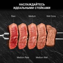 - С помощью электрогриля можно приготовить мясо, рыбу, бутерброды, сэндвичи, тосты, овощи и многое другое. Ребристая поверхность и высокая температура панелей способствуют быстрому приготовлению и проявлению характерного «полосатого» рисунка на продуктах.