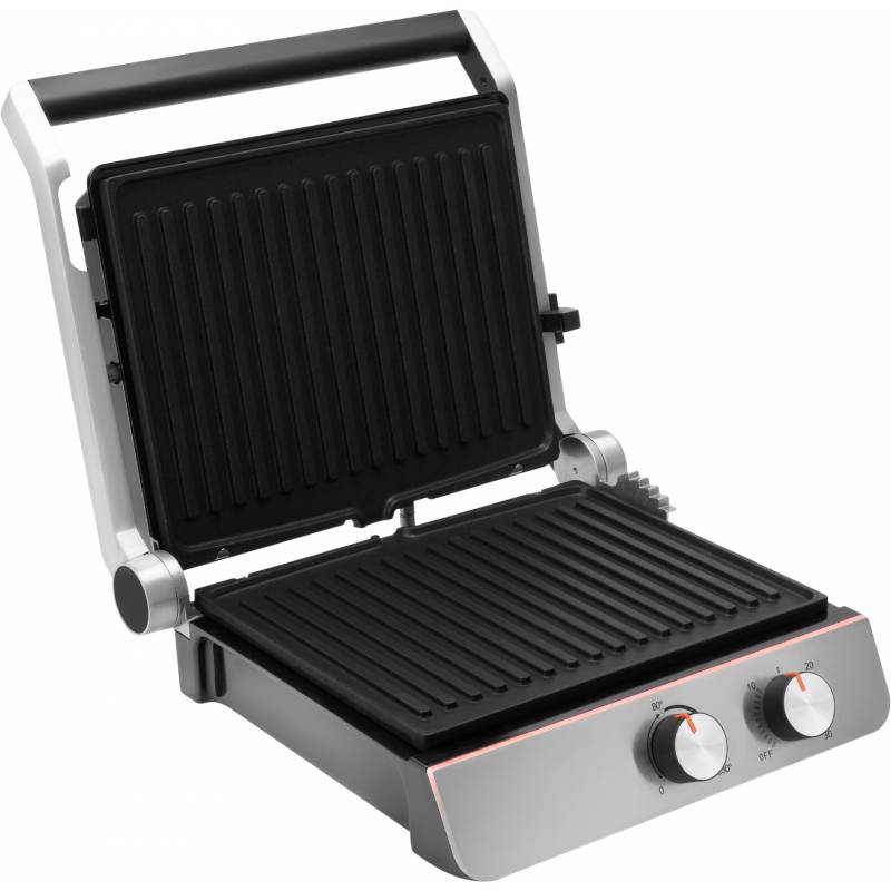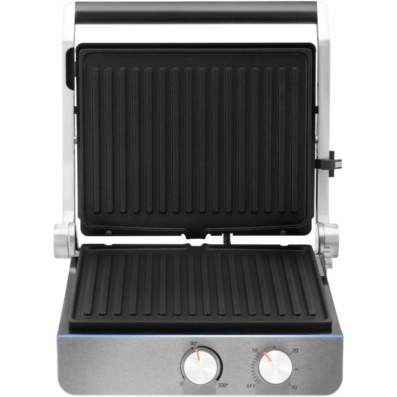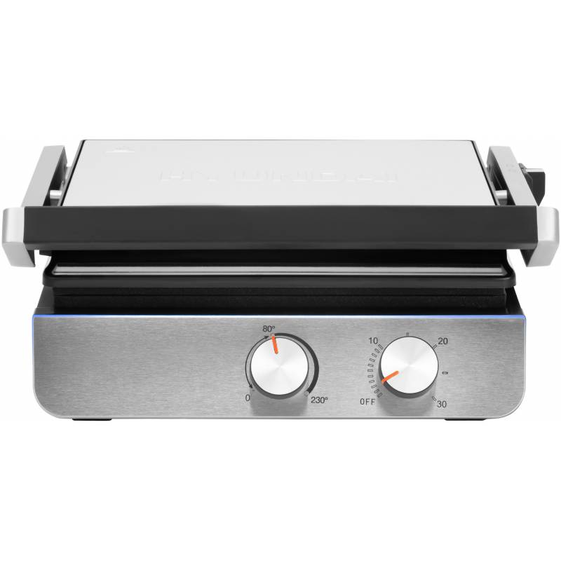 - Верхняя крышка имеет «плавающий» фиксатор и адаптирует свое положение под любой продукт с максимальным касанием к панели нагрева.