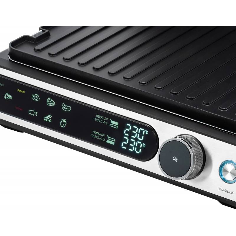 - Интуитивное и понятное сенсорное управление всеми установками и программами. 6 автоматических программ для приготовления, а так же ручной режим, для оптимальных настроек для каждого типа продуктов, открытие на 180° для работы в режиме барбекю.