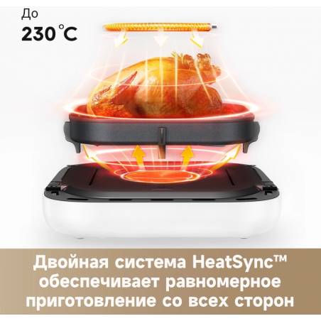 - Технология циркуляции горячего воздуха Poly-Air на 360°. 11 программ приготовления. Визуальный контроль приготовления. Двойная система нагрева: сверху и снизу.