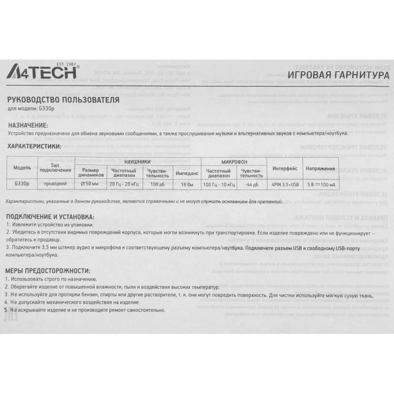 Наушники с микрофоном A4Tech Bloody G330p черный 2м мониторные оголовье (G330P)