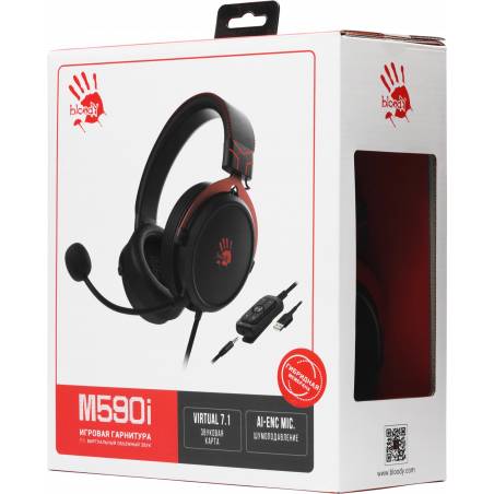 Наушники с микрофоном A4Tech Bloody M590i красный/черный 1м мониторные USB оголовье (M590I SPORTS RED)