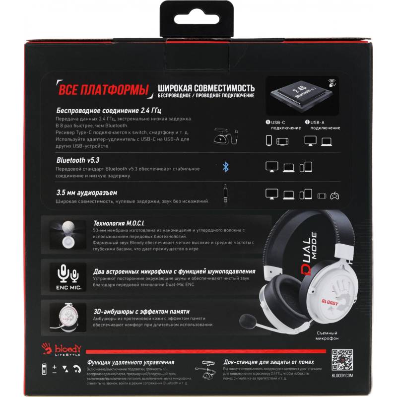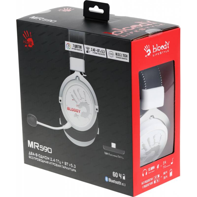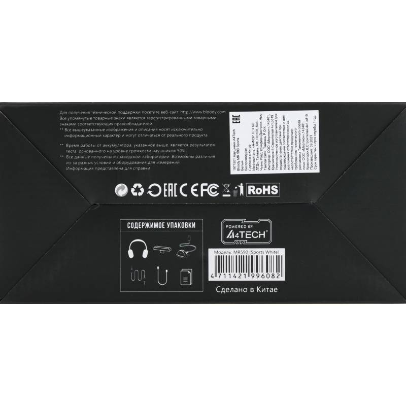 Наушники с микрофоном A4Tech Bloody MR590 Sports белый/черный 1.5м мониторные BT/Radio/3.5mm оголовье (MR590+ WIRED/SPORT WHITE)
