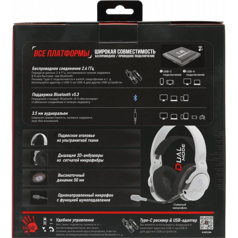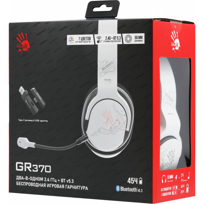 Наушники с микрофоном A4Tech Bloody GR370 белый мониторные BT/Radio/3.5mm оголовье (GR370)