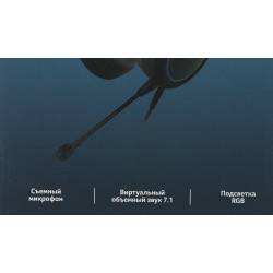 - Игровая гарнитура с поддержкой виртуального звука 7.1. Съемный микрофон. Вкл/выкл микрофона, регулировка громкости, вкл/выкл подсветки - на на кабеле. Удобное крепление наушников обеспечивает поворот чашек для большего комфорта. Мягкие амушюры с хорошей з