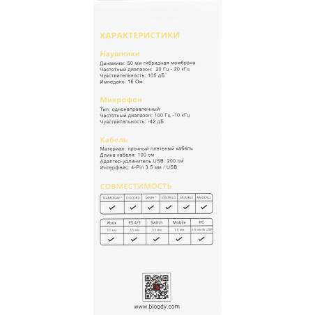 Наушники с микрофоном A4Tech Bloody M590i желтый/серый 1м мониторные USB оголовье (M590I SPORTS LIME)