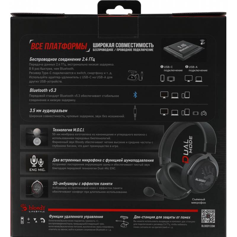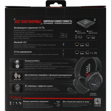 Наушники с микрофоном A4Tech Bloody MR590 Sports черный 1.5м мониторные BT/Radio/3.5mm оголовье (MR590 + WIRED/SPORT BLACK)
