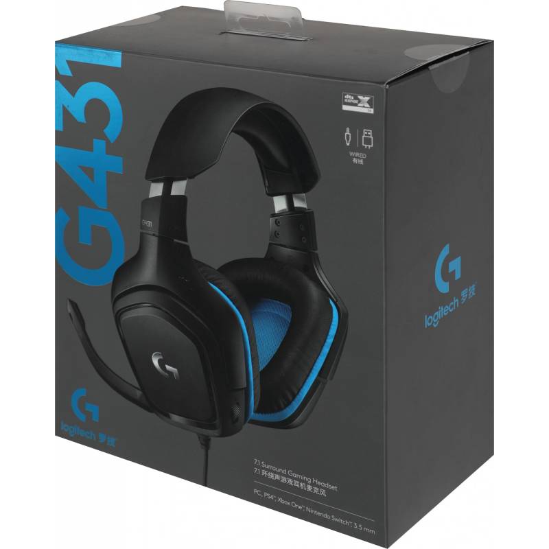 Наушники с микрофоном Logitech G431 черный/синий 2м мониторные оголовье (981-000772)