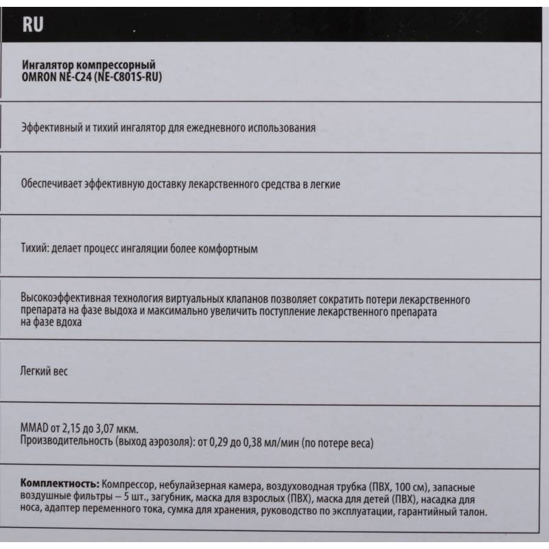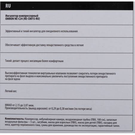 Ингалятор Omron NE-C24 (NE-C801S-RU) компрессорный стационарный белый