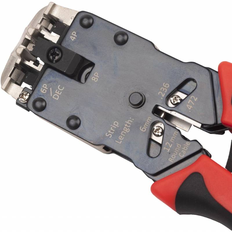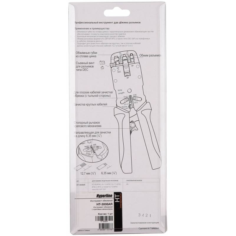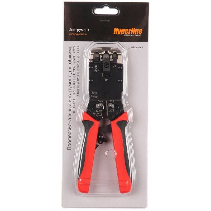 Инструмент обжимной Hyperline HT-3008AR для RJ-45/RJ-12/RJ-11 (упак:1шт) черный/красный
