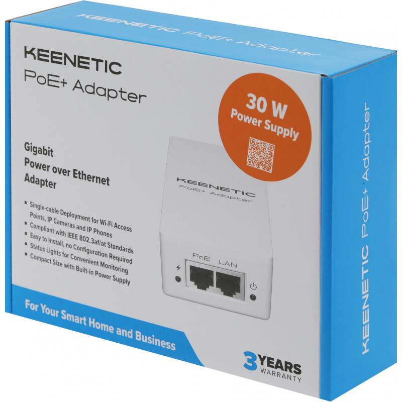 Инжектор PoE+ Keenetic KN-4510 10/100/1000BASE-T 30Вт 100-240В(АС)