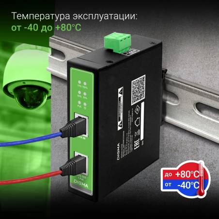 Инжектор PoE Digma DNP90W48GDXM 10/100/1000BASE-T 90Вт 37-57В(DC)