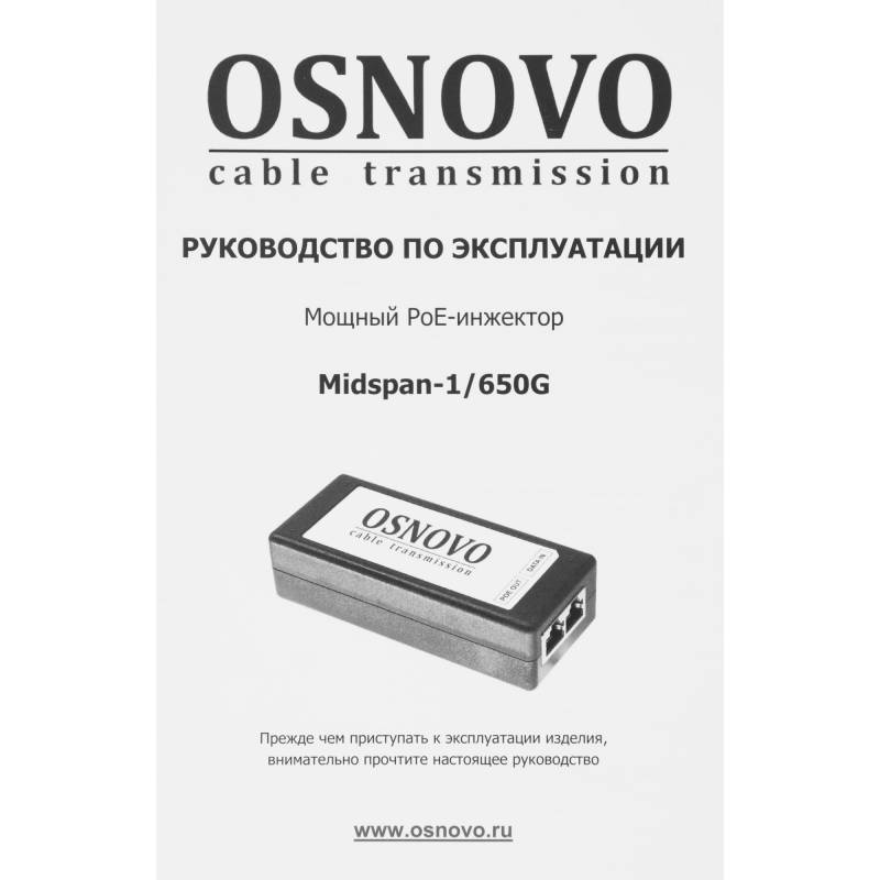 Инжектор PoE Osnovo Midspan-1/650G 10/100/1000BASE-T 65Вт 100-240В(АС)