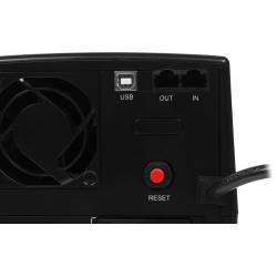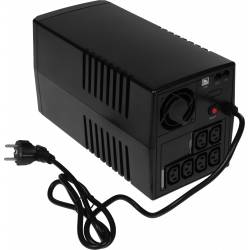 - ЖКИ с подсветкой отображает цифровую величину входного и выходного напряжения, а также величину нагрузки и остаточной ёмкости батареи, пиктограммы индикации питания от сети, от батареи, режим регулятора