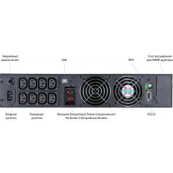- Поворотный ЖК дисплей: Входное / выходное напряжение, частота входного / выходного напряжения; Режимы работы: нормальный, байпас, питание от батарей; уровень заряда батарей; уровень нагрузки.
