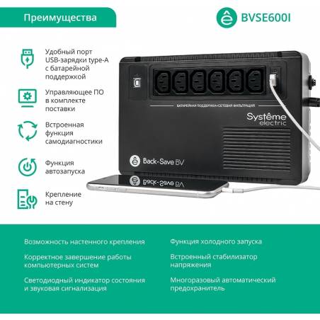 Источник бесперебойного питания Systeme Electriс BV BVSE600I 360Вт 600ВА черный