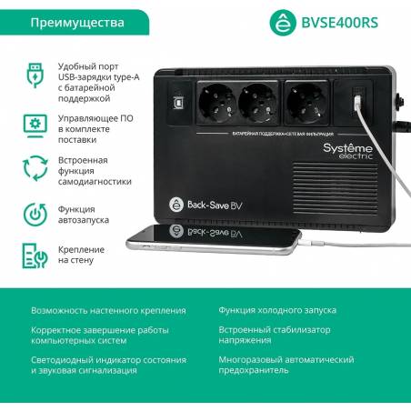 Источник бесперебойного питания Systeme Electriс BV BVSE400RS 240Вт 400ВА черный