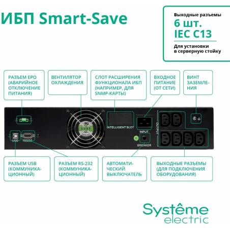 Источник бесперебойного питания Systeme Electriс SMT SMTSE2000RMI2U 1320Вт 2000ВА черный