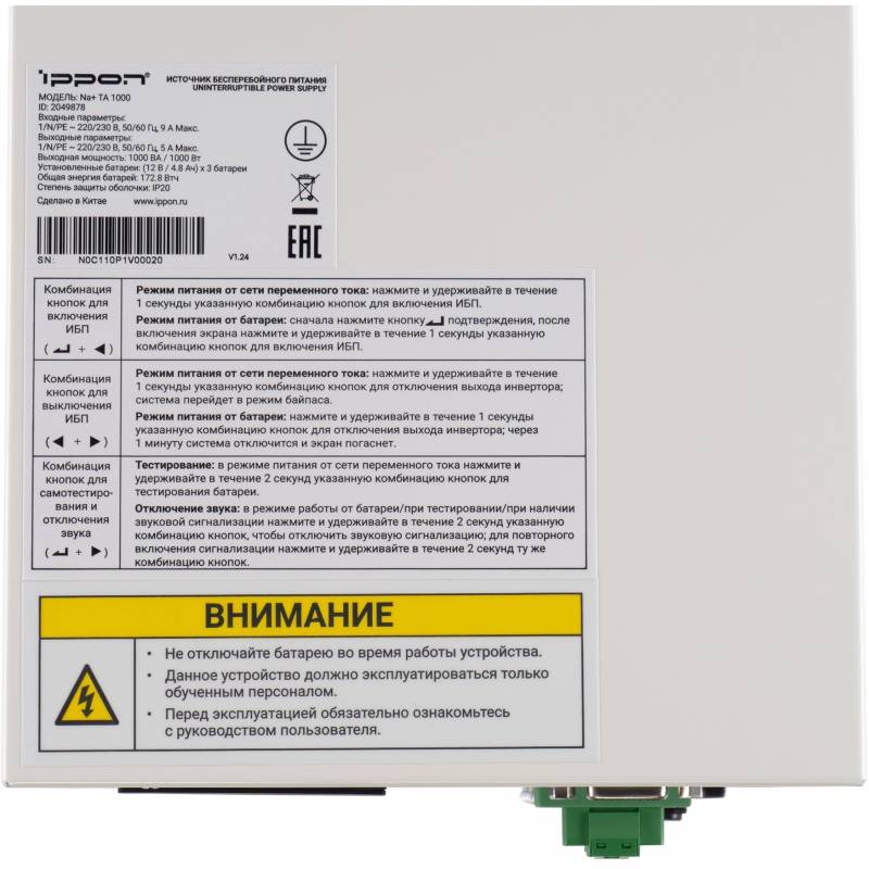 Источник бесперебойного питания Ippon Na+ TA 1000 1000Вт 1000ВА белый