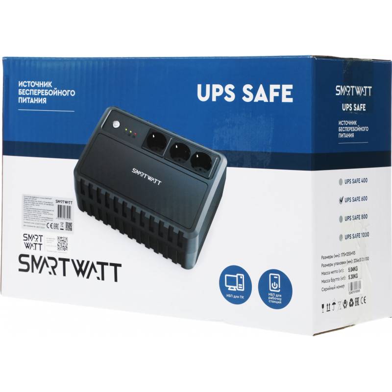Источник бесперебойного питания Smartwatt Safe 360Вт 600ВА черный