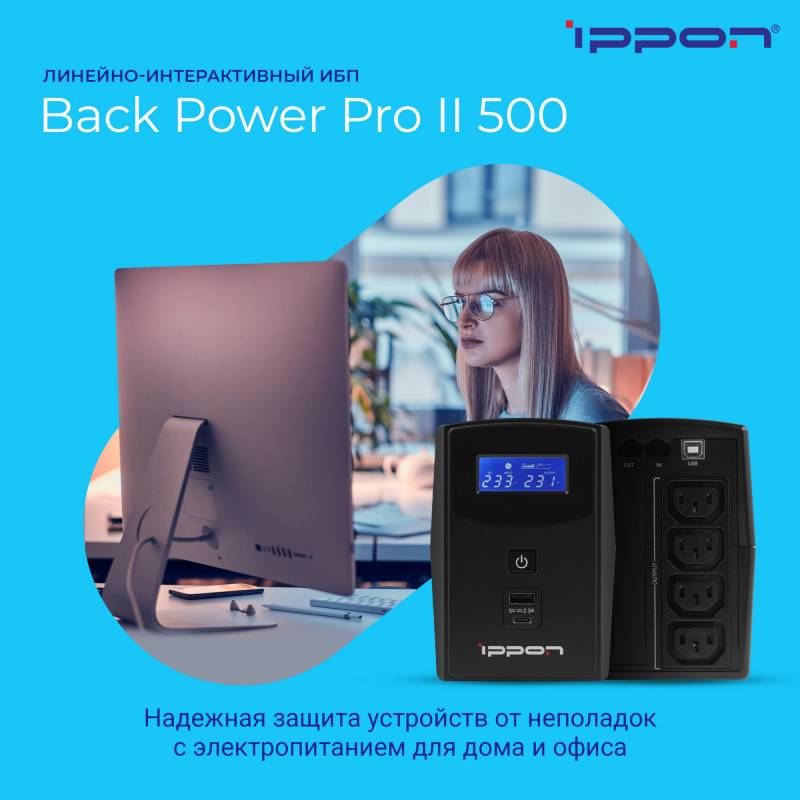 Источник бесперебойного питания Ippon Back Power Pro II 500 300Вт 500ВА черный
