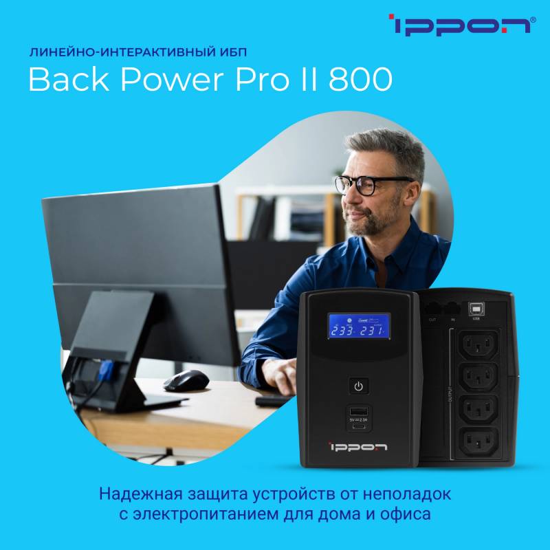 Источник бесперебойного питания Ippon Back Power Pro II 800 480Вт 800ВА черный