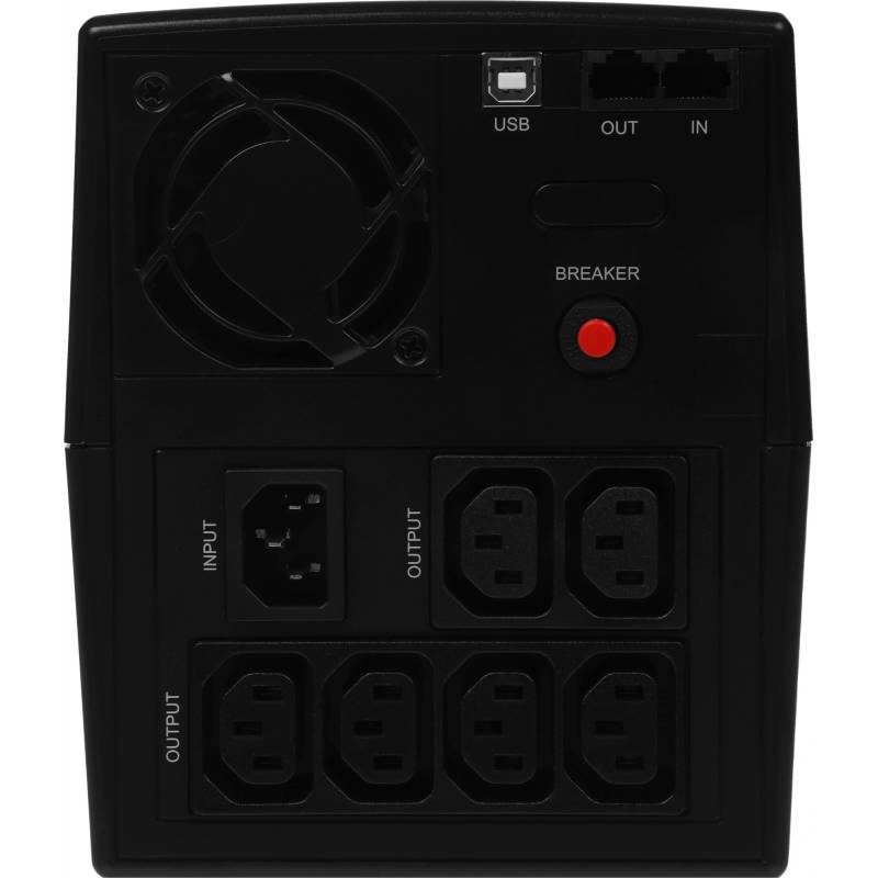 - защита сети (порт RJ-45), от глубокого разряда батареи, от импульсных помех, от короткого замыкания, от перегрузки