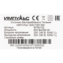Источник бесперебойного питания Импульс Мастер 600 360Вт 600ВА черный