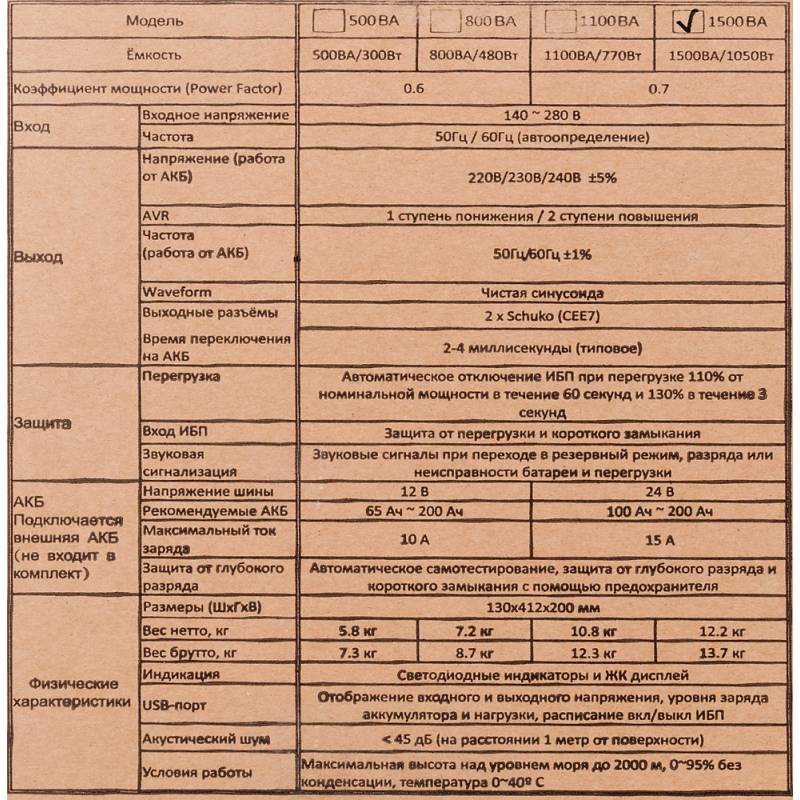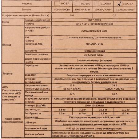 - Выходные розетки типа EURO, с батарейной поддержкой