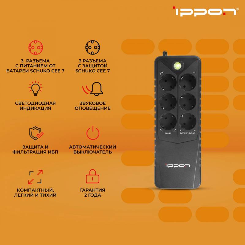 Источник бесперебойного питания Ippon Back Verso 600 300Вт 600ВА черный