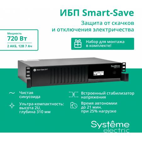 Источник бесперебойного питания Systeme Electriс SMT SMTSE1000RMI2U 720Вт 1000ВА черный