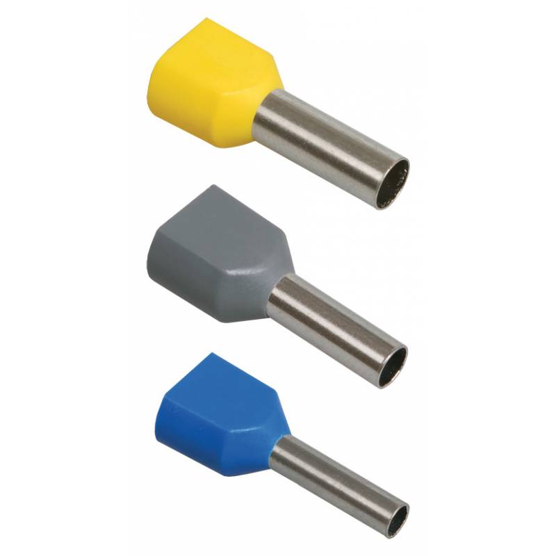 - Выполняют те же функции, что и наконечники-гильзы медные луженые (Е-гильзы), но дают возможность оконцевания не одного, а двух проводов.