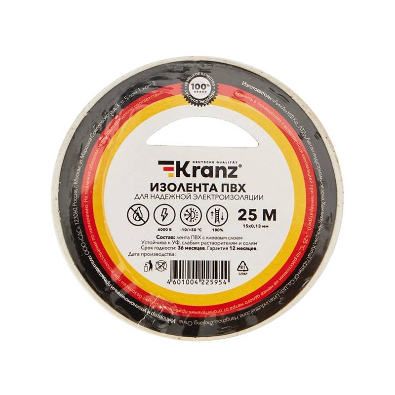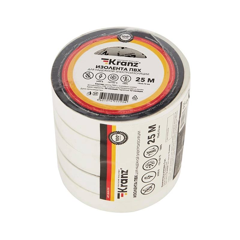 Изолента Kranz KR-09-2101 ш.15мм 25м белый