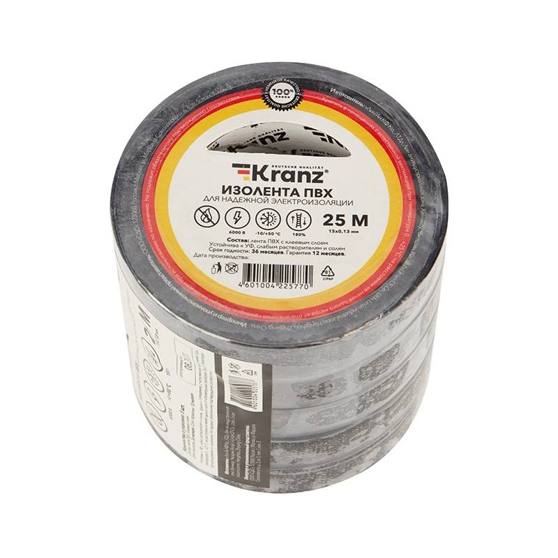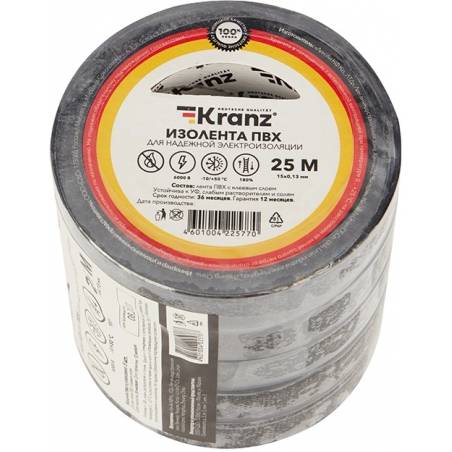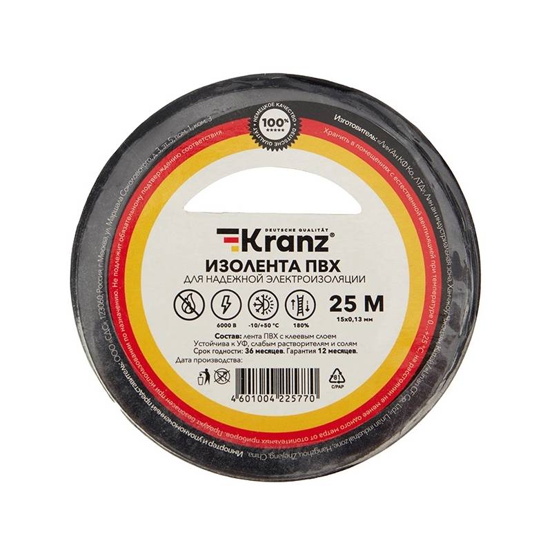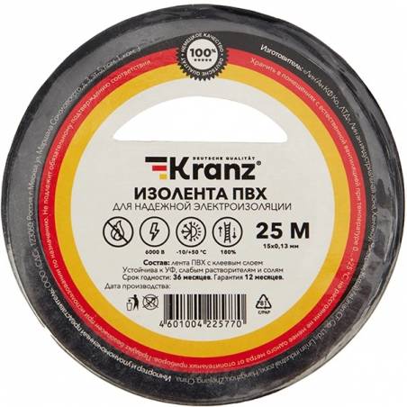 Изолента Kranz KR-09-2106 ш.15мм 25м черный