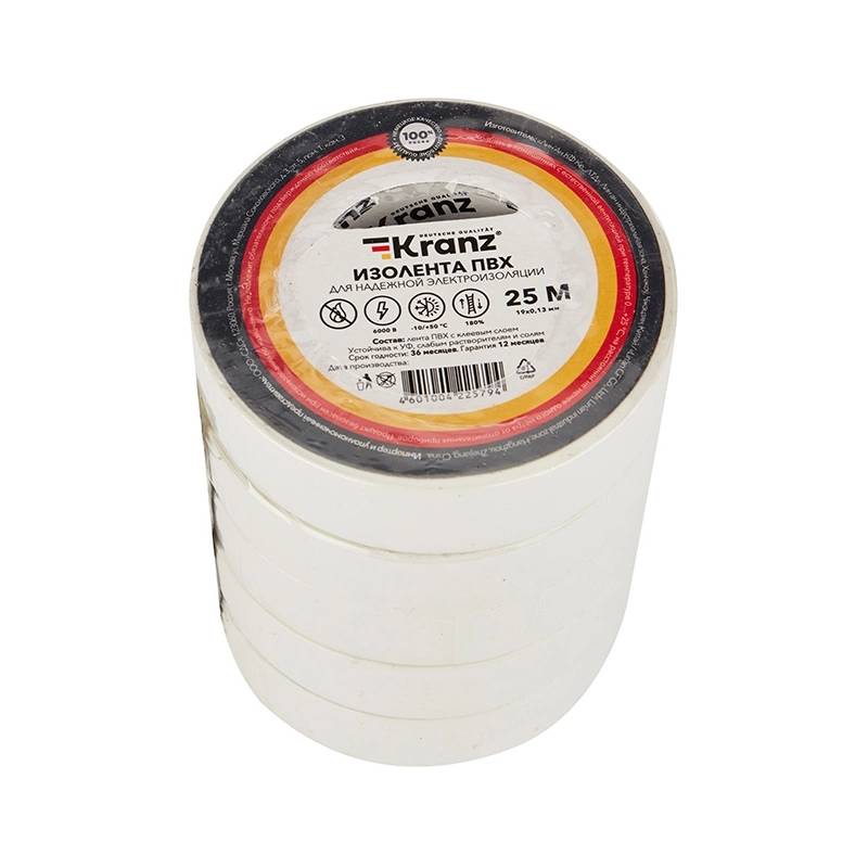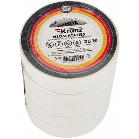 Изолента Kranz KR-09-2201 ш.19мм 25м белый