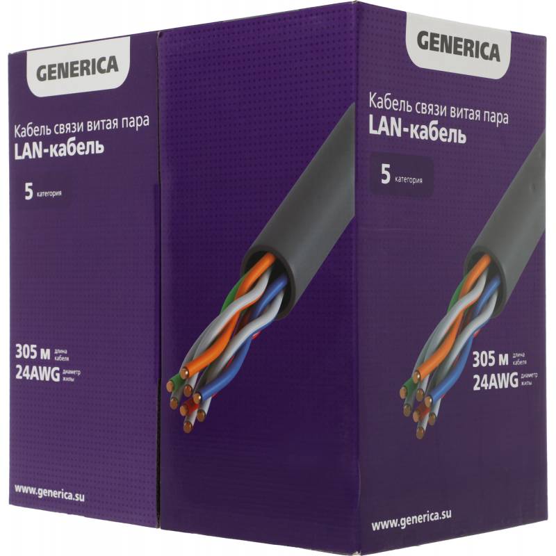 Кабель информационный ITK Generica BC1-C502-111-305-G кат.5 UTP 2 пары 24AWG PVC внутренний 305м серый