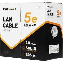Кабель информационный PROconnect 01-0052 кат.5E UTP 4 пары 24AWG PVC внутренний 305м серый