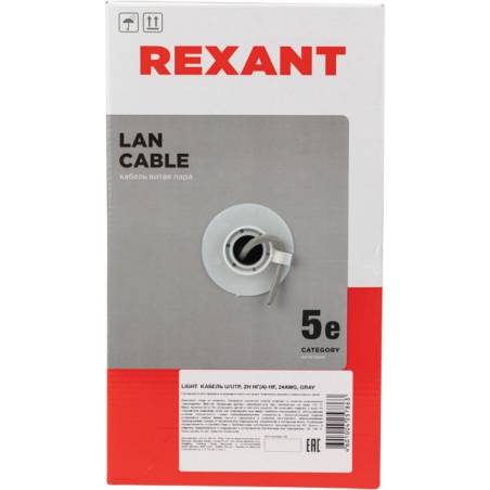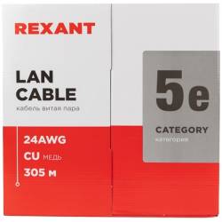 Кабель информационный Rexant 01-0059 кат.5E UTP 4 пары 24AWG нг(А)-HF внутренний 305м серый