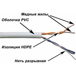 Кабель информационный Lanmaster TWT-5EUTP2-GY кат.5 UTP 2 пары 24AWG PVC внутренний 305м серый