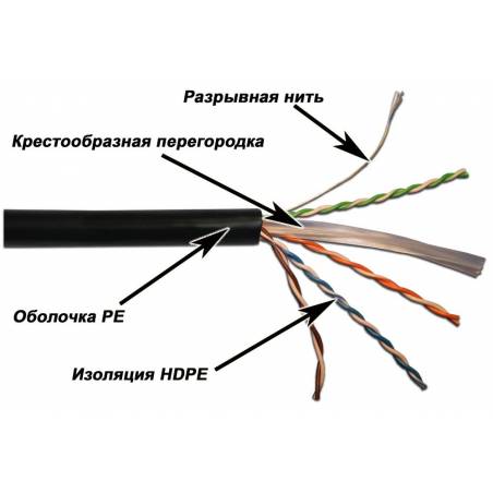 Кабель информационный Lanmaster LAN-6EUTP-OUT кат.6 UTP 4 пары 23AWG PE 305м черный