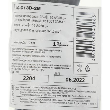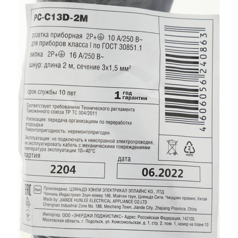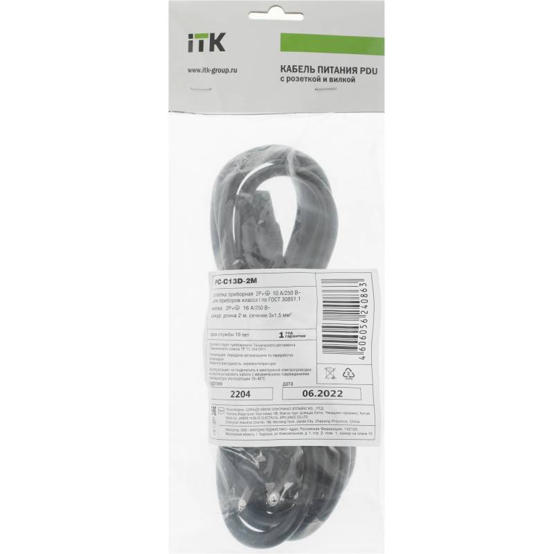 Шнур питания ITK PC-C13D-2M C13-Schuko проводник.:3x1.5мм2 2м 230В 10А черный