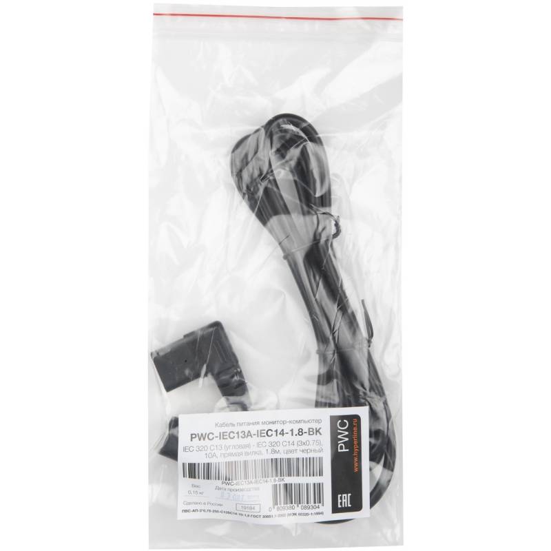 Шнур питания Hyperline PWC-IEC13A-IEC14-1.8-BK C13-С14 проводник.:3x0.75мм2 1.8м 250В 10А (упак.:1шт) черный