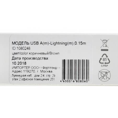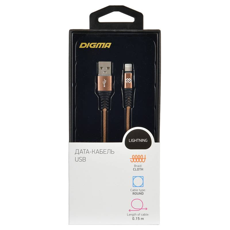 Кабель Digma LIGHT-0.15M-BR USB (m)-Lightning (m) 0.15м коричневый